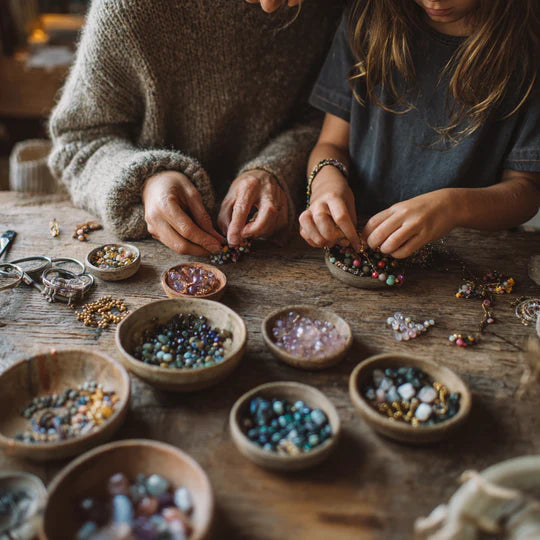 Each piece from Nora Lucille is handmade at our family table — crafted slowly, thoughtfully, and always with love. What starts with a mother’s hands and a child’s curiosity becomes timeless jewelry, made to carry meaning.